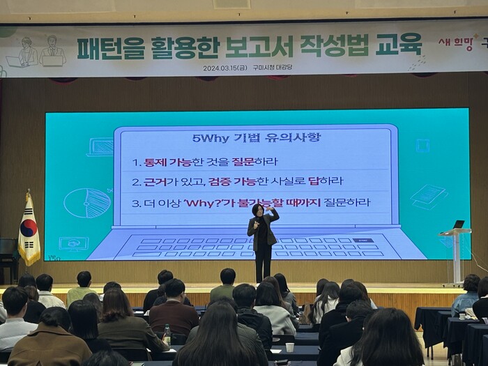 [구미=박병상 기자] 경북 구미시는 15일 7급 이하 공직자 140명을 대상으로 보고서 작성 실무교육을 했다.