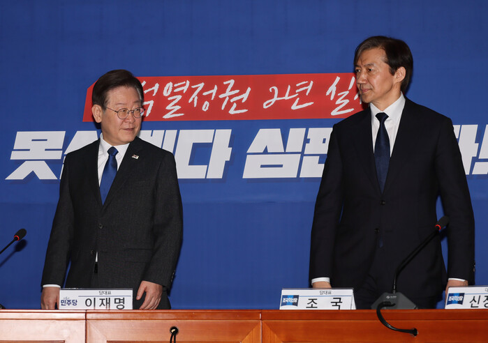 한편 사법리스크에 연루된 ‘조국’ 대표를 전면에 앞세운 것이 오히려 당의 약점이 될 수 있다는 주장도 나온다. 특히 협업 파트너인 이재명 대표도 함께 재판이 진행 중인 만큼, 이른바 ‘더블 사법리스크’ 프레임으로 몰릴 우려도 있다.
