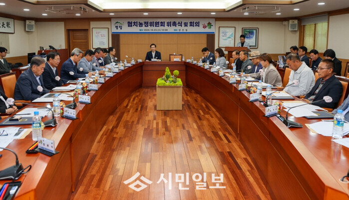 | ▲ 우승희 영암군수가 군청 낭산실에서 영암군협치농정위원회를 주재하고 있다. / 영암군 제공 |