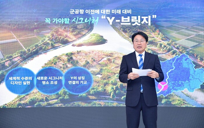 | ▲ 강기정 광주광역시장이 지난해 10월26일 오전 시청 소회의실에서 ‘영산강 100리길, Y프로젝트’ 대시민 발표를 하고 있다. /광주광역시 제공 |