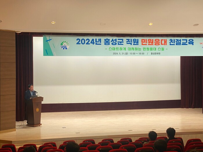[홍성=최복규 기자] 충남 홍성군이 친절하고 안전한 민원 서비스를 구현하기 위해 최근 홍성문화원에서 전 직원을 대상으로 민원 응대 노하우 역량강화 교육을 실시했다.