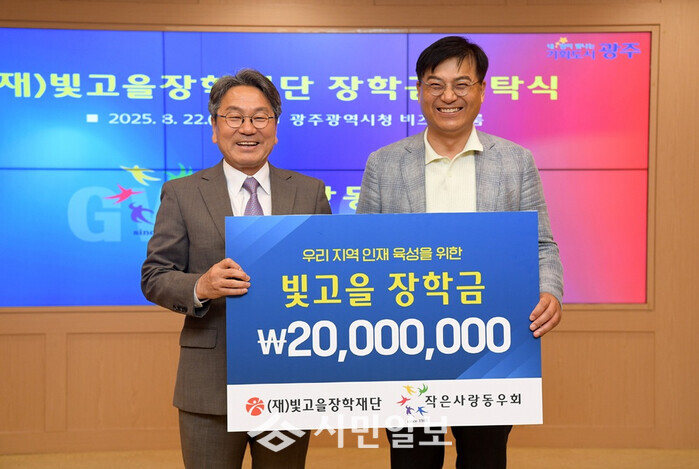 이날 시청 비즈니스룸에서 열린 장학금 기탁식에는 빛고을장학재단 이사장인 강기정 시장을 비롯해 작은사랑동우회 김승휘 회장과 회원 등 20여 명이 참석했다.