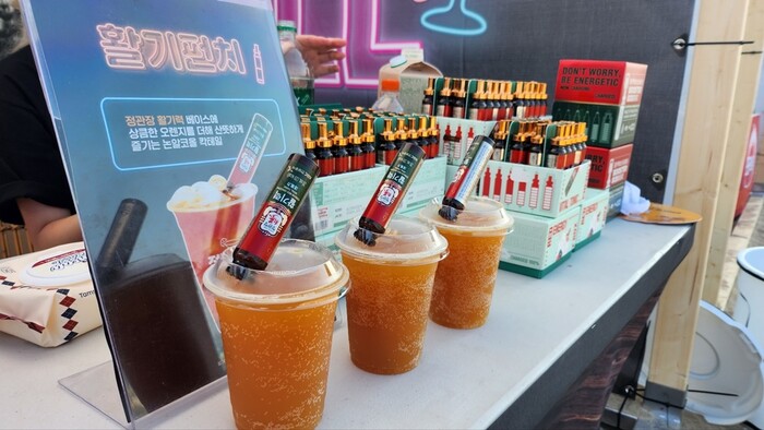 ‘활기펀치’는 정관장 홍삼에 전통 생약재와 비타민을 함유한 ‘활기력’에 상큼한 오렌지를 더한 논알콜 칵테일로, 산뜻한 색감과 새콤달콤한 맛으로 큰 인기를 끌었다.