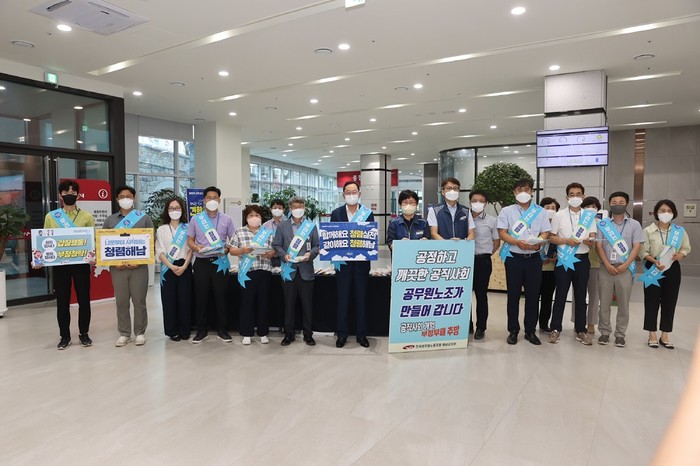 [해남=정찬남 기자] 전남 해남군이 출근길 직원들이 참여한 가운데 21일 군청사 로비에서 청렴캠페인을 전개했다.