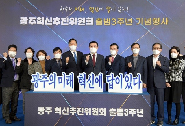 [광주=정찬남 기자] 광주광역시장 직속 광주혁신추진위원회(위원장 주정민)는 출범 3주년을 맞아 29일 시청 1층 시민숲에서 각계 시민들이 참여한 가운데 기념행사를 가졌다.