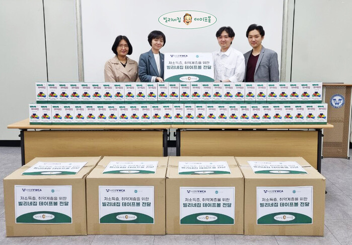 YWCA는 소외계층을 지원하는 비영리 단체로 가정 폭력 예방, 여성의 권리 보호 등 다양한 사회적 이슈에 대해 활발하게 활동하고 있다. 빌리네집은 이와 같은 YWCA의 목표와 가치를 공유하며 사회적 약자를 돕기 위해 테이프볼 500세트를 기부했다.