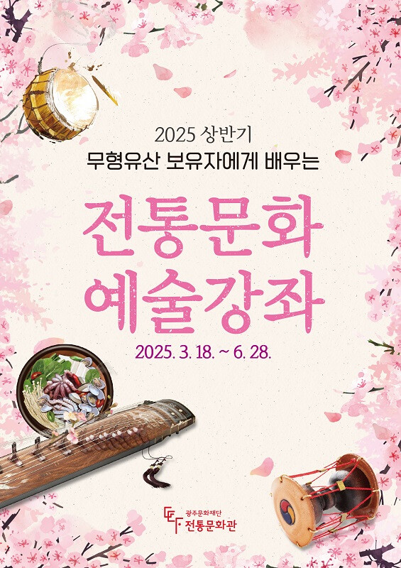[광주=정찬남 기자] 광주문화재단 전통문화관은 청소년을 비롯해 시민 누구나 참여할 수 있는 ‘2025 상반기 전통 문화예술 강좌’ 수강생을 모집한다.