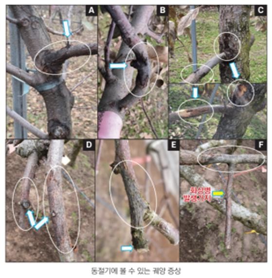 국가검역병인 과수화상병은 치료약이 없는 세균성 병으로 감염된 나무는 잎과 가지, 과일이 불에 탄 듯이 검게 변하여 말라죽는 증상을 보이며, 감염된 나무를 매몰한 뒤에는 3년간 해당 과수원에서 기주식물 재배가 금지된다.