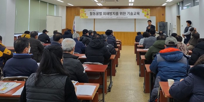 이에 따라 강진군은 월동 꿀벌 피해 방지를 위해 꿀벌 최고 전문가인 국립농업과학원 김동원 박사를 초빙해 지난 12월 22일 농업기술센터에서 관내 양봉 농가 50여 명을 대상으로 사전 교육을 진행했다.