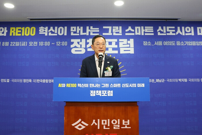 해남군과 박지원, 안도걸, 정진욱 국회의원이 공동 주최하고, (재)한국종합경제연구원이 주관한 이번 포럼은‘AI와 RE100 혁신이 만나는 그린 스마트 신도시의 미래’를 주제로, 새정부의 핵심 정책과제로 추진하고 있는 AI 3대강국 도약과 신재생에너지 중심의 에너지 대전환 정책에 대한 논의의 장으로 마련됐다.