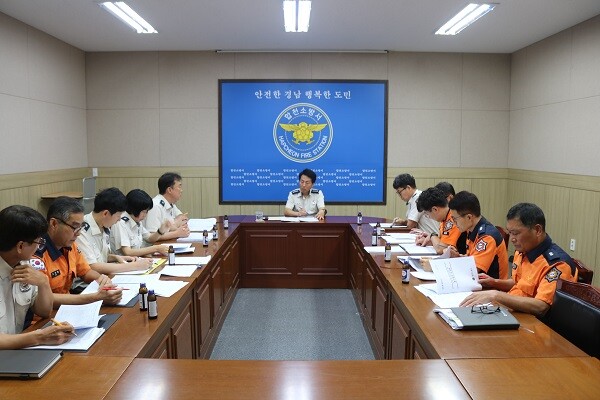 [합천=이영수 기자] 합천소방서(서장 조형용)는 5일 3층 소회의실에서 서장, 과·단장, 담당들이 참석한 가운데 ‘2023년 수행 소방관서 종합평가’ 대비 중간점검 보고회를 개최했다고 밝혔다.