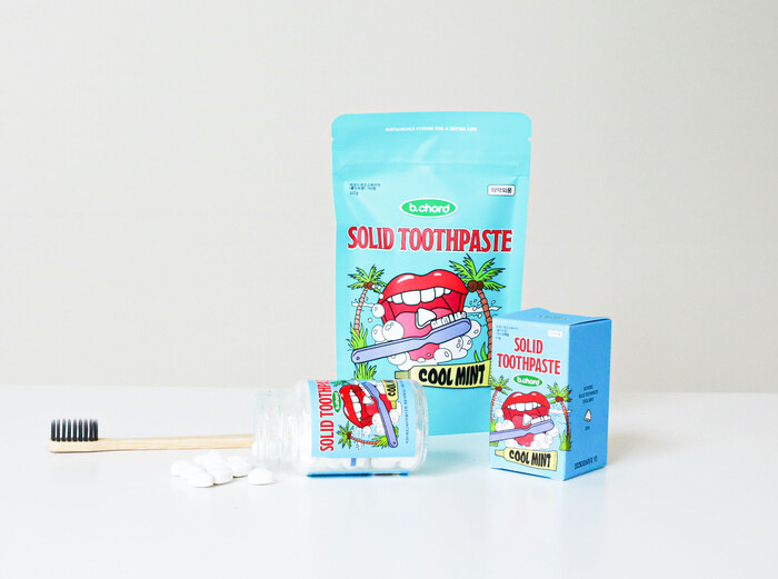 새롭게 출시된 신제품은 언제 어디서나 쉽고 위생적으로 사용이 가능하도록 개별 포장된 12정 구성의 알루미늄 캡과 유리용기에 밀폐 포장된 60정 구성 유리용기 포장 타입, 친환경종이 소재 파우치 형태로 리필이 가능한 150정 구성 대용량 등 고체치약 3종을 비롯해 곰팡이 억제를 위해 친환경 소재로 만들어진 ‘뱀부칫솔 no.1’ 등 총 4종이다.