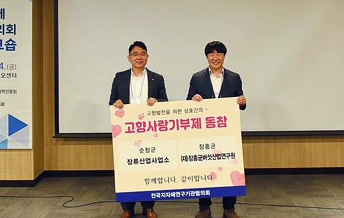 [장흥=장영채 기자] 전남 장흥군버섯산업연구원이 순창군장류산업사업소와 함께 고향사랑기부제 교차 기부를 진행했다.