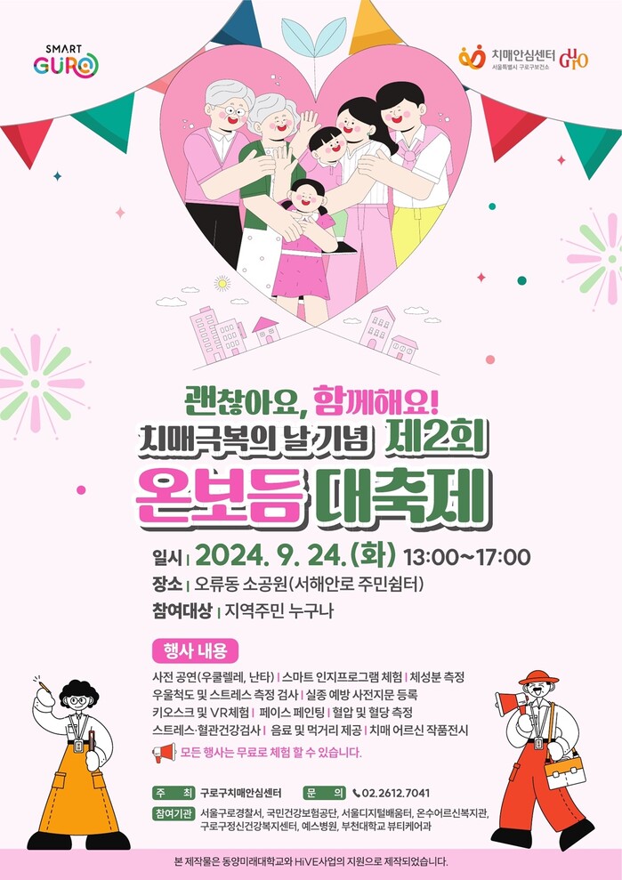 [시민일보 = 박소진 기자] 서울 구로구(구청장 문헌일)가 치매극복의 날을 맞아 오는 24일 ‘제2회 온보듬 대축제’를 개최한다.