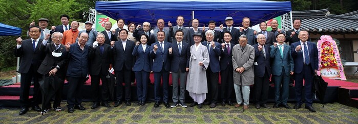 | ▲ 영모당과 추원당의 국가 보물 지정 축하 기념식에 참석한 김승남 국회의원, 윤재갑 국회의원, 김보미 강진군의회의장, 강진 · 해남 주요 성씨 대표, 해남윤씨 문원 등 관계자 / 강진군 제공 |