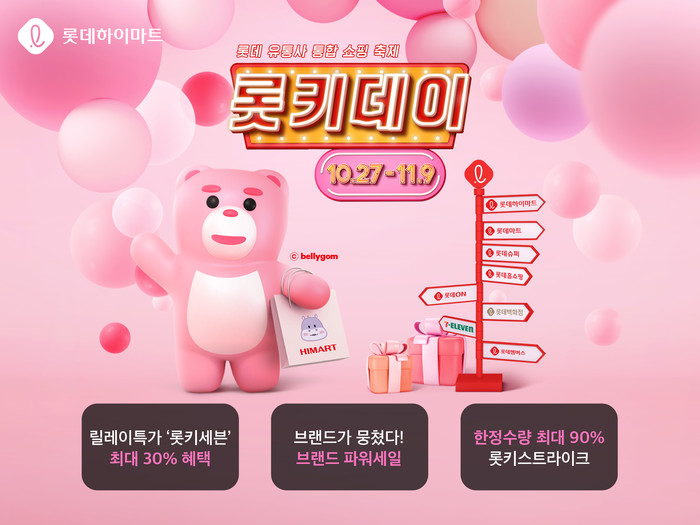 롯데 유통 계열사들과 함께 하는 통합 행사도 있다. 11월2일까지 텀블러, 스티커 타포린백 등 6종의 굿즈로 구성된 ‘벨리곰 롯키박스’를 한정수량 판매한다. 롯데하이마트 모바일 앱에서 엘페이로 결제하는 선착순 1000명에게 1만9900원에 판매한다.