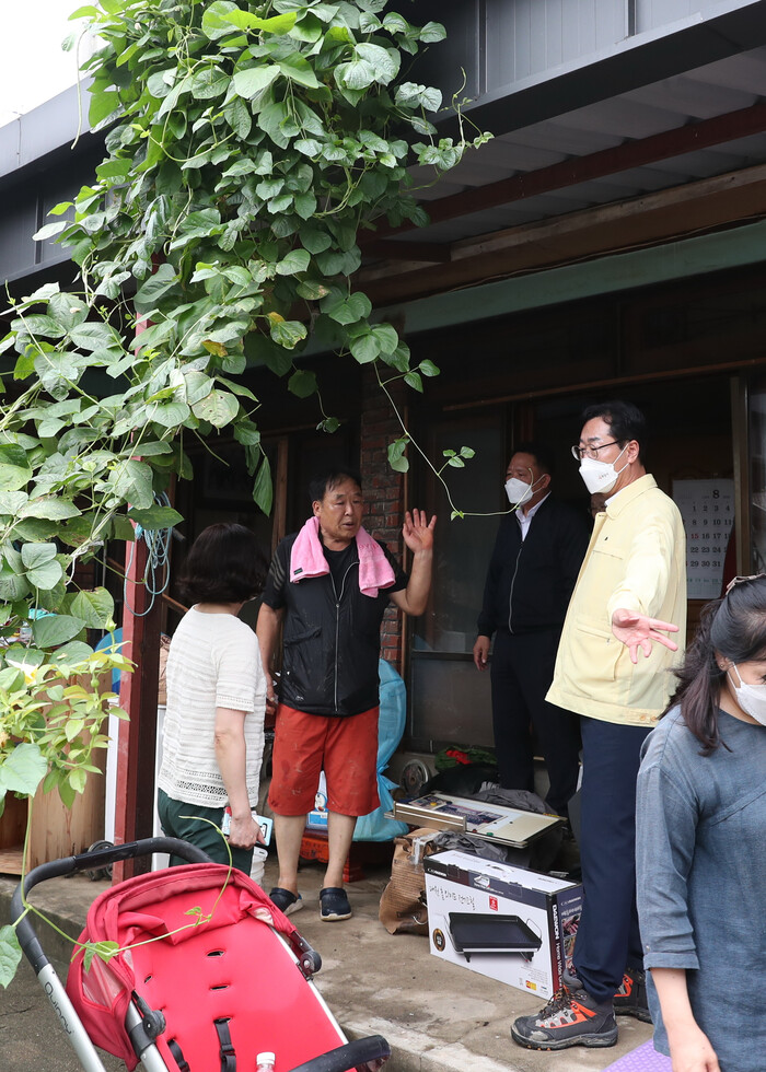 | ▲정명근 화성특례시장이 지난 2022년 8월 황계지구 침수 피해 가정을 위문하고 있다 /사진제공=화성특례시 |