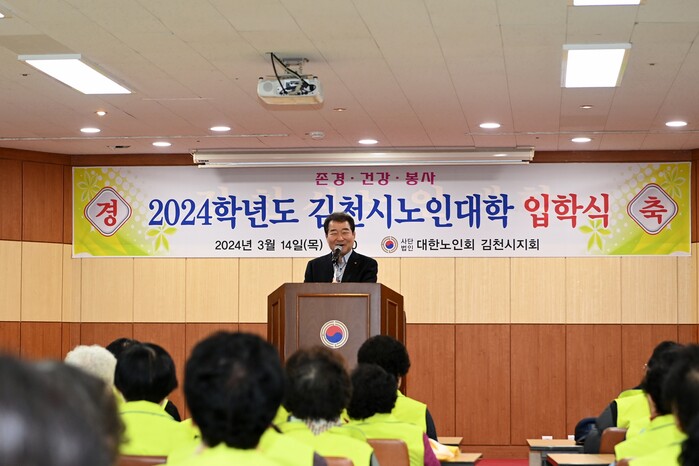 [김천=박병상 기자] 경북 김천시(시장 김충섭)에서 지원하고 대한노인회 김천시지회(지회장 이부화)가 주최하는 2024년 노인대학 입학식이 지난 3월 14일 대한노인회 김천시지회 2층에서 노인대학 입학생 265명과 입학을 축하하는 내빈과 지회 임원진 등 300여 명이 참석한 가운데 개최됐다.