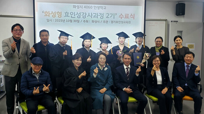 [화성=송윤근 기자] 경기 화성특례시(시장 정명근)가 지난 30일 중장년 세대의 인생 2막을 지원하는 ‘4060 화성인생학교’의 일환으로, 경기효인성교육원협동조합 ‘화성형 효인성 교육 강사자격과정’ 수료식을 개최했다.