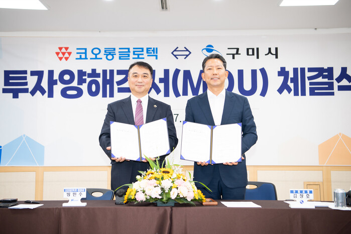 [구미=박병상 기자] 경북 구미시는 24일 시청 대회의실에서 김장호 구미시장, 방민수 코오롱글로텍㈜ 대표이사를 비롯한 관계자 20여 명이 참석한 가운데 투자양해각서 체결식을 개최했다.