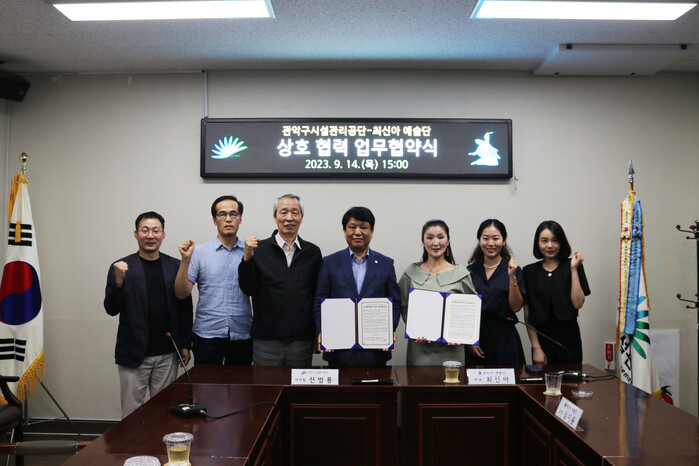 [시민일보 = 여영준 기자] 서울 관악구시설관리공단(이하 공단)이 지난 14일 최신아예술단과 지역사회 상생발전 및 문화예술사업 활성화를 위한 업무협약을 체결했다.