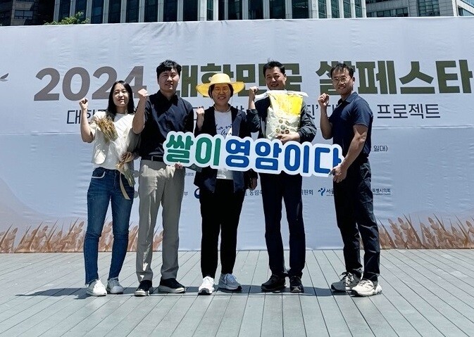 | ▲ 영암군, 지난 28일부터 29일까지 서울광장에서 열린 ‘2024 대한민국 쌀 페스타’에서 농업브랜드 대상 ‘농어업·농어촌특별위원장상’을 수상 기념촬영 / 영암군 제공 |