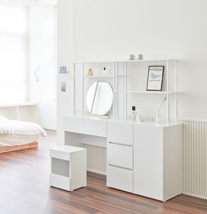 화장대 3종은 기존의 플레인 수납장과 같은 높이, 같은 컬러로 출시되어 다양하게 배치해 활용할 수 있다.
