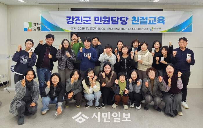 [강진=정찬남 기자] 전남 강진군이 지난 27일 농업기술센터 소회의실에서 ‘강진군 민원담당 친절교육’을 실시했다. 이번 교육은 군민에게 보다 친절하고 신뢰받는 민원행정 서비스를 제공하기 위해 민원봉사과 및 읍·면 민원 창구 직원 30여 명이 참석해 민원응대 역량을 강화하는 교육을 실시했다.