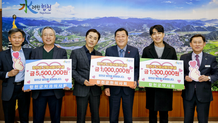 이날 기탁한 기부금은 이들 단체 회원 및 가족들의 자발적 참여로 치과의사회 550만원, 한의사회 100만원, 약사회 130만원을 기부하며 합천 발전을 응원했다.
