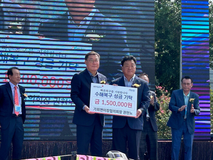 권현노 협의회장은 “지역사회의 어려움을 함께 극복하고자 하는 마음으로 성금을 기탁하게 되었다”며 “앞으로도 가회면이장협의회를 대표해 수해 복구 지원에 최선을 다하겠다”고 전했다.