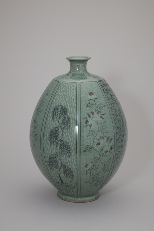 | ▲ 제25회 대한민국 청자공모전 대상을 수상한 김원식 작가의 ‘청자 팔각 긴행꼬’ / 강진군 제공 |