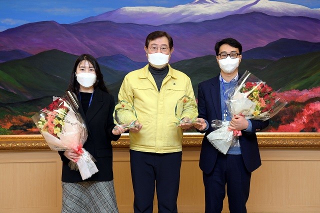 [광주=정찬남 기자] 광주광역시는 ‘1월의 공무원’으로 일자리정책관실 유명환 주무관과 민생경제과 이명주 주무관을 공동 선정하고 7일 시청에서 열린 정례조회에서 시상했다.