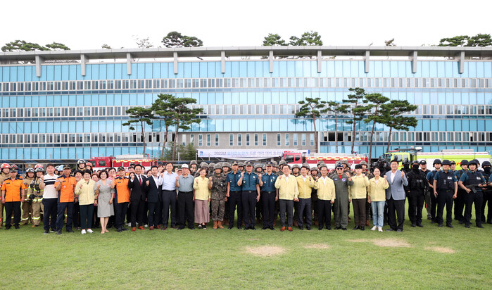 [수원=임종인 기자] 경기 수원시의회가 지난 22일 경기도청 구청사에서 실시한 2023 을지연습 실제훈련을 연계한 드론 테러 대비 통합 대응 훈련을 참관했다.
