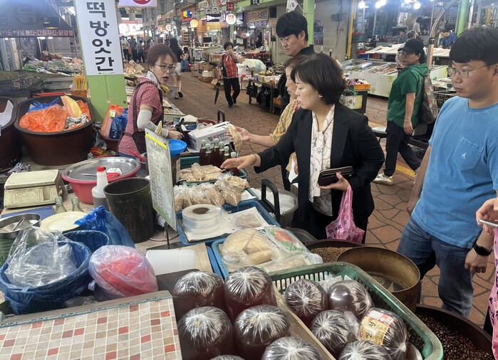 [안동=박병상 기자] 경상북도 환경산림자원국(국장 조현애) 직원들은 지난 21일 민족 고유의 명절인 추석을 앞두고 맛과 멋이 어우러진 구미 새마을중앙시장을 찾아 장보기 행사를 가졌다.