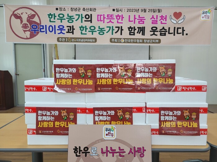또한, 9월 중 청소년 한우 맛체험 행사로 창녕고, 남지중 등 5개 학교에 불고기용 고기 120kg(400만 원 상당)을 지원하며, 오는 10일에는 추석맞이 한우 나눔 행사로 노인복지시설, 장애인시설, 지역아동센터 등 18개소에 불고기용 고기 120kg(400만 원 상당)을 지원하는 등 창녕한우 소비 활성화 활동을 지속적으로 이어갈 계획이다.