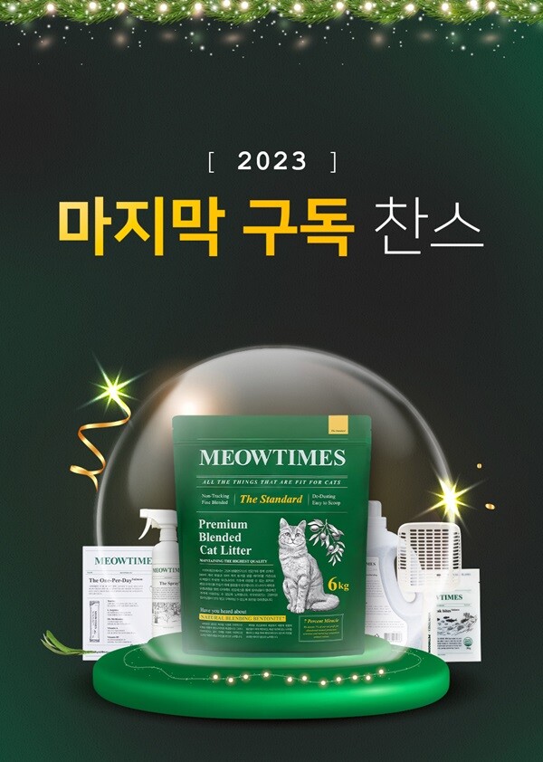 12월 26일부터 29일까지 미우타임즈 신규 구독자 선착순 500명에게 5만원 상당의 프리미엄 고양이 케어 제품으로 구성된 ‘미우 박스’를 증정한다. 1회차 100% 포인트 적립 페이백, 최대 45% 저렴한 프리미엄 모래 구매 등 기존 혜택 또한 받을 수 있다.