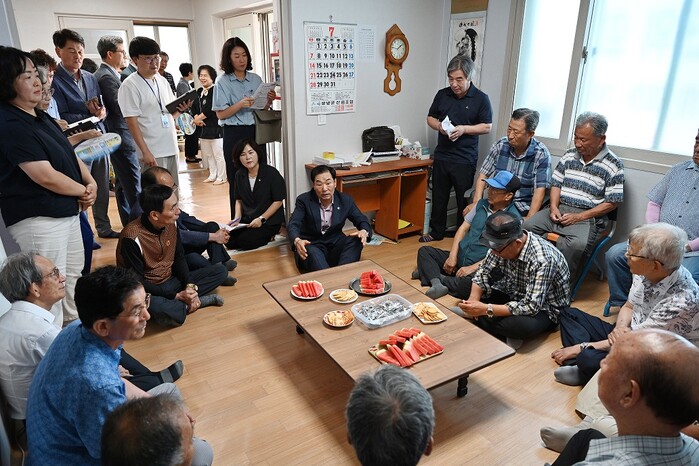 성 군수는 무더위에 취약한 어르신들의 건강과 안부를 직접 살피며 폭염 대응 온열질환 예방 행동요령을 안내하고 경로당 이용에 불편함은 없는지 애로사항을 청취하는 등 소통의 시간을 가졌다.
