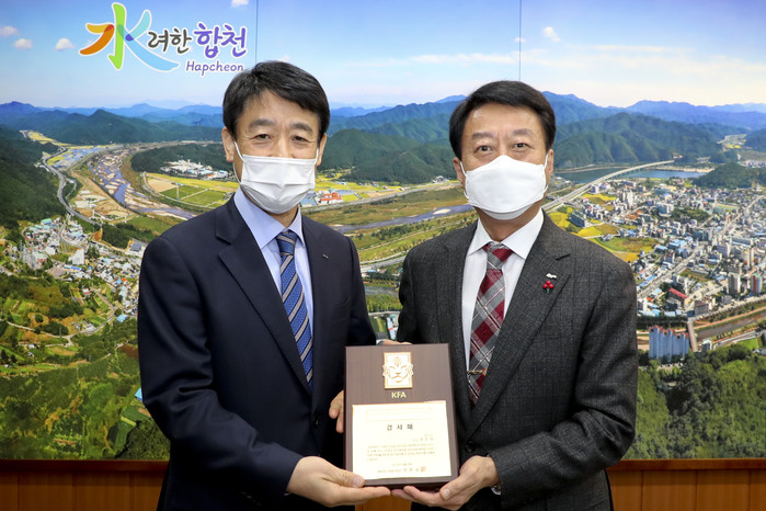대한축구협회(회장 정몽규)는 김상석 경남축구협회장을 통해 지난 4일 합천군청에서 문준희 합천군수에게 KFA AWARDS 감사패를 전달했다.