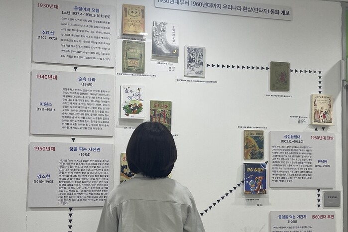 영암도서관 2층 복도에서는 ‘그림책 전시’가 열린다. ‘일제강점기부터 1960년대까지 우리나라 그림책과 환상동화 계보’를 주제로 한 전시다. 1926년 일본 발간 나카무라 료헤이의 ‘조선 동화집’을 포함해 마해송, 윤석중, 강소천 작가의 초판본 그램책 표지를 인쇄한 나무 미니 패널 책도 볼 수 있다.