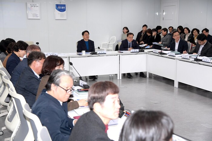 | ▲ 강기정 광주광역시장이 20일 오전 시청 소회의실에서 열린 ‘2024년도 스포츠‧관광 분야 업무보고회’에서 관련정책을 논의하고 있다. /광주광역시 제공 |