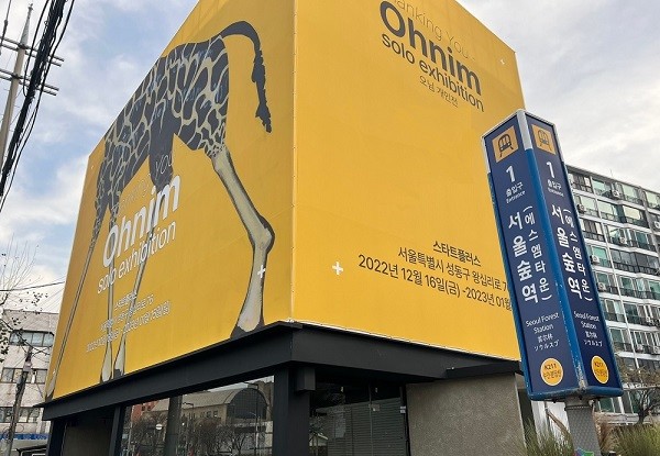 Ohnim 작가는 12월 16일부터 2023년 1월 15일까지 서울 성동구 'StART PLUS'에서 개인전 ‘Thanking You - Ohnim Solo Exhibition’을 통해 작품들을 선보일 예정으로, 최근 ‘내가그린기린그림1(Giraffe In My Eyes 1, 2022)’ 아트웍을 서울숲 대로에 위치한 건물 전체에 대형 규모로 내걸며 미리 작가의 작품세계를 경험할 수 있도록 했다.