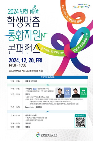[인천=김형만 기자] 인천시교육청은 12월 20일 ‘한 아이도 포기하지 않는 인천 학생 맞춤 통합지원 - 학교와 지역사회 학생으로 잇다!’ 콘퍼런스를 개최한다고 밝혔다.