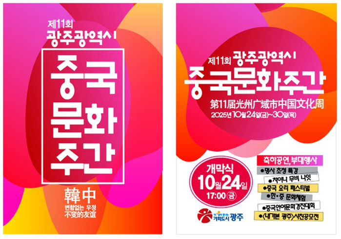 24일 오후 5시 광주차이나센터에서 열리는 개막식에는 강기정 시장을 비롯해 구징치 주광주중국총영사, 김병내 남구청장, 박상철 호남대 총장 등이 참석해 중국문화주간 선포를 함께 축하할 예정이다.
