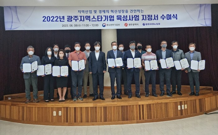 한편, 광주지역 스타기업은 성장잠재력과 기술력을 갖추고 일자리 창출, 지역사회 공헌 등이 우수한 기업들을 체계적으로 지원하기 위해 중소벤처기업부와 광주시가 지역에 소재하는 중소기업을 대상으로 최근 3년간 평균 매출액 50억~400억 원, 최근 5년 평균 매출증가율 5% 이상, 최근 평균 매출액 대비 연구개발(R&D) 투자비중이 평균 1% 이상, 최근 3년 평균 고용증가율 5% 이상을 충족한 기업 중 향후 성장 잠재력과 기술력을 갖춘 우수 중소기업을 선정한다.