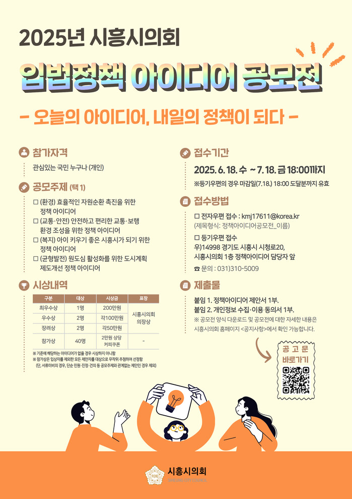[시흥=송윤근 기자] 경기 시흥시의회(의장 오인열)가 2025 입법정책 아이디어 공모전을 개최한다.