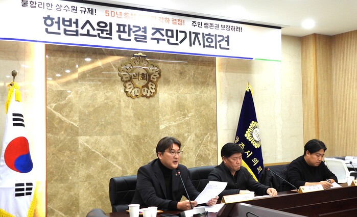 그는 또 “1975년부터 이어져온 상수원보호구역 규제 피해는 여전히 진행 중”이라며 “헌법소원 재검토를 추진하고 있으며 수도법과 상수원관리규칙 개정에 주민 뜻을 반영할 수 있도록 행정부와 국회에 지속적으로 요구하겠다”고 밝혔다.