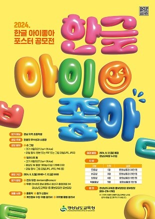 공모전 주제는 ‘한글의 우수성과 소중함’이며 경남 지역 초등학생이면 누구나 참여할 수 있다. 공모 분야는 ▴학생이 크레용 등 도구를 이용해 직접 그린 손 그림 ▴컴퓨터나 디지털 기기를 이용해 그린 일러스트(illustration)이다.