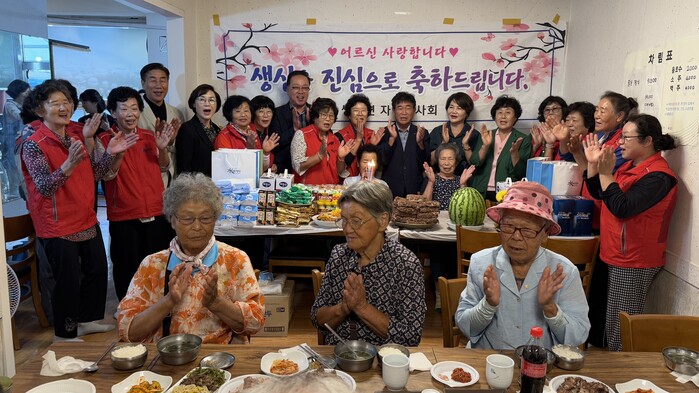 [합천=이영수 기자] 합천군 쌍백면 자원봉사회(회장 이윤자)는 9일 쌍백면 소재 식당에서 지역 어르신 40여명을 초청해 생신상 차려드리기 행사를 마련했다.
