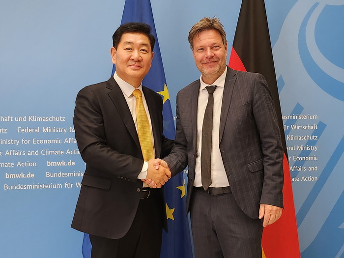 한종희 부회장은 27일(현지시간) 독일 베를린 정부청사에서 로베르트 하베크 독일 부총리 겸 경제기후보호부장관을 접견했다.