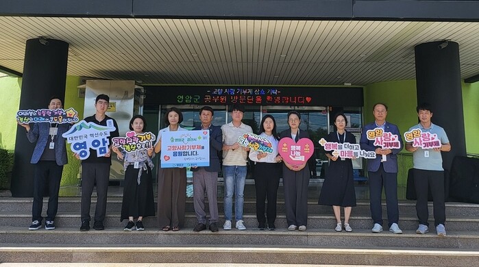| ▲ 전남 영암군과 경북 경산시 공직자들이, 지난 30일 경산시농업기술센터에서 고향사랑기부금을 상호기부하고 기념촬영을 하고있다. / 영암군 제공 |